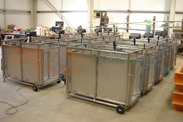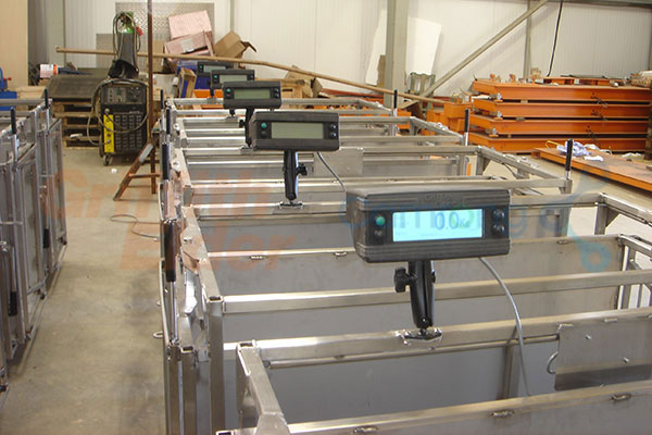 畜牧秤/牲畜籠有可選的可調(diào)邊欄,可用以稱重各種大小的牲畜。牲畜籠的兩側(cè)可由全封鐵皮制作以確保牲畜通過(guò),也可做成半封式柵欄用以檢查牲畜乳頭。各種特定要求均可訂制。